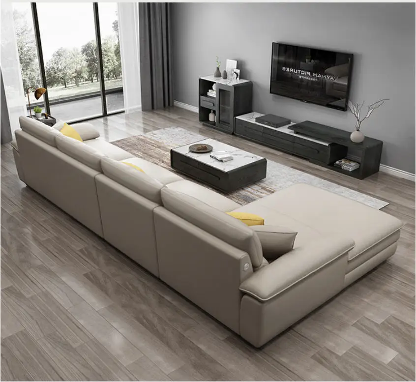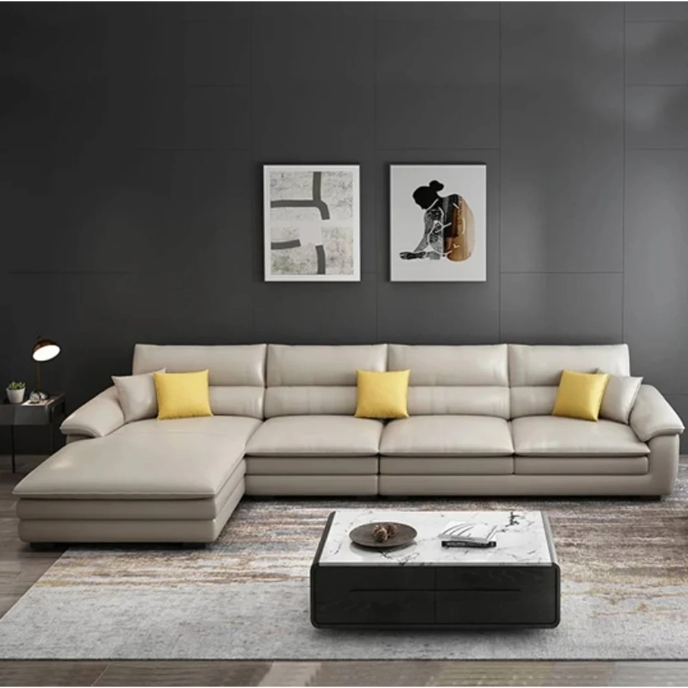 Bring elegance and comfort to your home with the MANBAS Nordic Leather L-Shaped Sofa, crafted from Italian genuine leather for a luxurious and durable finish. This spacious sectional is designed in a Nordic minimalist style, blending seamlessly into modern living rooms while providing ample seating for family and guests. The L-shaped configuration maximizes floor space and offers versatile seating options, perfect for lounging, entertaining, or relaxing. Its high-quality leather upholstery is soft, durable, and easy to maintain, ensuring long-lasting comfort and style. Ideal for contemporary homes, apartments, or spacious living areas, this sectional combines premium craftsmanship, modern design, and functional comfort in one elegant piece of furniture.