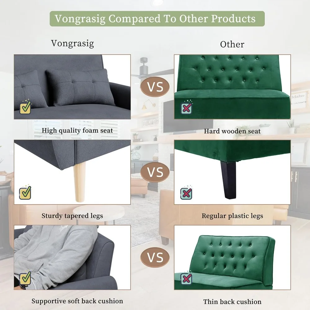 Bring timeless style and comfort to your home with the Mid-Century 2-Seat Linen Loveseat. Designed with a classic mid-century modern aesthetic, this loveseat features tufted back cushions for added elegance and comfort. Its soft linen upholstery provides a smooth and breathable seating surface, perfect for relaxing in small living rooms, apartments, or cozy reading nooks. The tapered wooden legs elevate the sofa’s design while offering sturdy support and a light, airy feel. Compact yet comfortable, this two-seater sofa is ideal for spaces where style and functionality must coexist. Durable construction ensures long-lasting use, while the plush cushions provide superior comfort for daily lounging. Whether for entertaining guests or enjoying quiet evenings at home, this loveseat combines modern design, practicality, and sophistication. Its neutral linen fabric easily complements a variety of décor styles, making it a versatile addition to any living space. Upgrade your home with this stylish, space-saving mid-century modern loveseat.