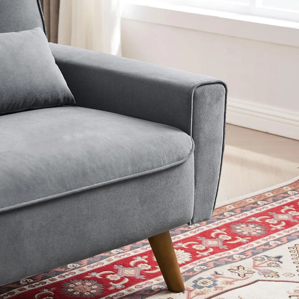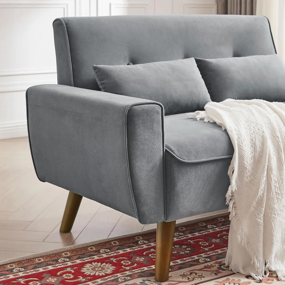 Bring timeless style and comfort to your home with the Mid-Century 2-Seater Loveseat Sofa. Designed with a classic mid-century modern aesthetic, this loveseat features plush back cushions for added comfort and support. Its sleek wooden legs enhance stability while adding a sophisticated touch to any living room, bedroom, or office space. Perfect for small spaces, this compact loveseat provides comfortable seating for two without overwhelming your room. Upholstered in durable, soft fabric, it combines longevity with cozy comfort for everyday use. The minimalist design and neutral tones blend seamlessly with a variety of décor styles, from contemporary to traditional. Ideal for relaxing, reading, or entertaining guests, this loveseat offers both practicality and elegance. Upgrade your space with a stylish, functional, and comfortable two-seater sofa that embodies mid-century modern charm.